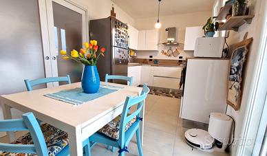 Alghero, l'immobiliare Nord Ovest propone in vendita nella centrale via Marconi appartamento in ottimo stato, pari al nuovo, al quarto piano con ascensore, in piccola palazzina di recente costruzione. Appartamento molto luminoso con doppio affaccio composto da: ampia sala, cucina abitabile, due camere da letto di cui la matrimoniale con bagno, secondo bagno, disimpegno con armadio, ripostiglio e tre balconi di cui due abitabili. Finestre con avvolgibili elettrici e zanzariere. Pompe di calore caldo/freddo, pannelli solari, serbatoio idrico condominiale, impianto di allarme. L'appartamento viene venduto parzialmente arredato (cucina) o con arredamento completo con trattativa a parte. Nelle vicinanze tutti i servizi (negozi, supermarket, scuole,... ) e parcheggi liberi.