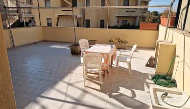 Alghero, l'Immobiliare Nord Ovest propone in vendita appartamento con ampio terrazzo, al piano rialzato, in zona stazione Sant'Agostino, a 500 metri dalla spiaggia del Lido. L'appartamento è composto da un'ampia sala con angolo cottura da cui, con due portefinestre si accede ad un terrazzo di circa 50 mq con tenda solare. Due camere da letto, disimpegno, bagno, ripostiglio e un balcone con accesso dalla camera da letto. Appartamento in condominio, ma con due ingressi indipendenti, di cui uno dal terrazzo. Appartamento in buono stato in zona dotata di tutti i servizi (mercato, farmacia, tabacchi, ospedale...).