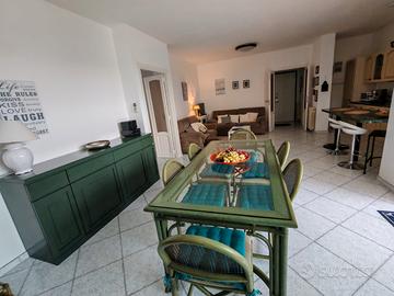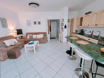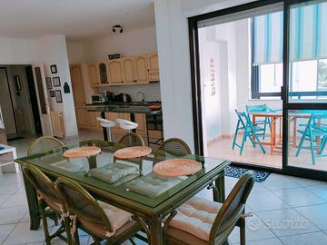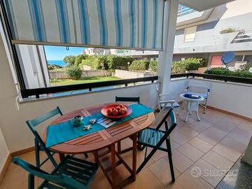 Alghero, l'Immobiliare Nord Ovest propone appartamento zona Calabona con parziale vista mare. Appartamento al piano terra con doppio ingresso, sia dal condominio sia indipendente. In ottimo stato e composto da: ingresso, ampia sala con cucina a vista e terrazzo con vista mare, disimpegno, tre camere da letto, due bagni, ripostiglio e secondo piccolo terrazzo. Tende da sole, riscaldamento a gas indipendente e pompe di calore. Parzialmente arredata. Possibilità garage con trattativa a parte. Posizione eccezionale con il mare a pochi passi. Attualmente l'appartamento è una locazione turistica ben avviata, e pertanto può essere messo a reddito subito.