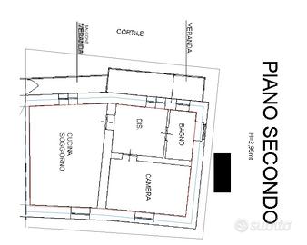 Soggiorno, disimpegno, camera da letto e bagno finestrato.