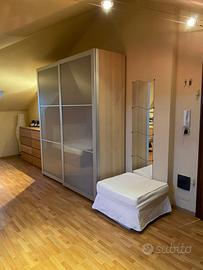 Si affitta ad uso transitorio per la durata di mesi 12 (dodici), eventualmente rinnovabile, alloggio mansardato di 42 mq ammobiliato, open space, a Busca in via Risorgimento n. 15/c, 4 piano con ascensore, composto da angolo cottura con piano di lavoro, ampia zona giorno con divano letto; zona notte con grande armadio e letto matrimoniale; bagno con doccia, sanitari e lavatrice.
