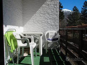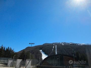 Affittasi per la stagione alloggio con doppi servizi, cucina, ampio soggiorno, due camere, 5 posti letto, due balconi. Ottima vista panoramica, comodo alle piste da discesa e alla zona di Campo Smith.