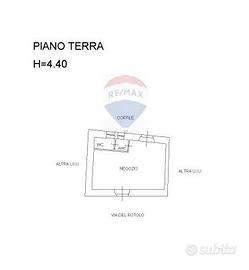 Al piano terra troviamo tre botteghe, una appena dietro l'angolo, quindi su via Messina, da 60 mq circa con cortile interno, che attualmente ospita un attività pizzeria d'asporto e le altre due su Via del Rotolo, una da 47 mq che ospita un altra attività toelettatura per animali e la terza attualmente libera con una metratura di 36 mq circa.