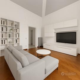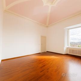 Entrandovi siamo accolti da un ampio ingresso, attraversando il quale si accede in primo luogo a un grande salone e, successivamente, ad una cucina abitabile. Il reparto notte, ben disimpegnato, comprende invece tre camere matrimoniali. Gli interni sono completati da un bagno. Salone e camere da letto offrono uno dei punti di forza tra i più rilevanti di questo immobile: un'incantevole vista sulle colline, vero plus di un appartamento nel centro storico.