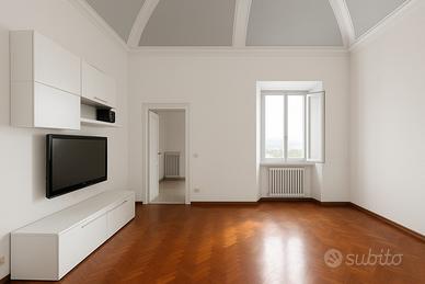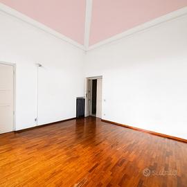 L'abitazione si sviluppa per 140 mq complessivi al primo dei tre piani di un palazzo e al suo interno presenta spazi ampi e ben distribuiti, dove a colpire immediatamente sono due elementi: l'altezza dei soffitti a volta (5 metri), aspetto che contribuisce a rendere ancora più ariose le stanze, e l'ingresso costante di luce naturale in tutti gli ambienti. I soffitti, inoltre, sono impreziositi da splendidi stucchi decorativi.