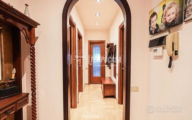 La soluzione è internamente così disposto: ingresso, soggiorno con balcone, cucina separata e abitabile con uscita sul terrazzino sfruttabile anche d'inverno in quanto dotato di vetrate scorrevoli che permettono di chiuderlo completamente; la zona giorno è servita da due bagni, mentre la zona notte è composta da due camere matrimoniali, una cameretta ed un altro bagno.