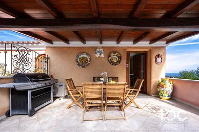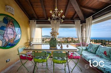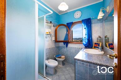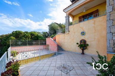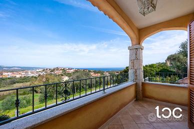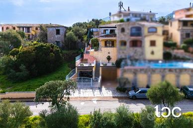 In posizione riservata e panoramica, proponiamo in vendita spaziosa unità immobiliare disposta su tre livelli, caratterizzata da spazi armoniosamente distribuiti e da una splendida vista mare. L'ingresso alla proprietà avviene attraverso un primo cancello, che conduce a un comodo garage situato frontalmente. Continua la proprietà un comodo giardino privato che porta alla veranda d'ingresso all' abitazione. La zona giorno è il cuore della casa che accoglie un luminoso soggiorno con angolo cottura, progettato per offrire convivialità e comfort. Completano il livello un bagno di servizio e una magnifica terrazza panoramica con vista sulla Isola di Tavolara, perfetta per pranzi e cene all'aperto o per godersi momenti di assoluto relax. La zona notte, riservata e silenziosa, è composta da tre camere da letto, un bagno e un pratico ripostiglio. Gli ambienti risultano funzionali e accoglienti, ideali per soddisfare le esigenze di una famiglia o per ospitare amici. Completano le dotazioni un curato arredamento, riserva idrica, clima, doccia esterna e ripostiglio. Ottime finiture in pietra sarda e granito. Questa proprietà rappresenta una soluzione ideale per chi desidera un ampia casa vacanze, dove panorama, tranquillità e qualità degli spazi si fondono in perfetto equilibrio.