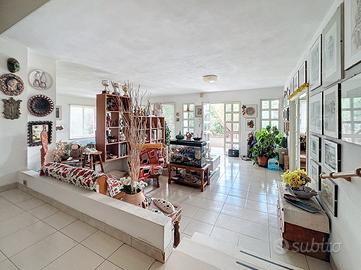 Situata nella città di Sassari, precisamente in via Pirandello. La villa, di 400 mq si sviluppa su due livelli, circondata da un ettaro di terreno. Grazie alla sua posizione strategica, l'immobile offre l'opportunità di godere della natura circostante senza rinunciare alla comodità di essere immersi nel centro cittadino. Al piano terra troviamo una spaziosa e luminosa sala, una grande cucina, quattro camere da letto e due bagni. Al piano seminterrato, di circa 200 mq, adibito a categoria catastale commerciale e artigianale, troviamo ulteriori quattro vani ed un servizio, oltre al laboratorio di ceramica attualmente utilizzato dai proprietari. L'immobile, può essere convertito completamente ad uso residenziale oppure, sfruttando la categoria commerciale, può diventare la sede di eventi e attività, uffici o una qualsiasi altra attività commerciale. La zona circostante offre numerosi servizi, come trasporti pubblici, negozi, scuole e parchi, rendendola perfetta per soddisfare ogni esigenza.