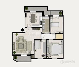 In via Piave proponiamo in vendita un appartamento di 100 mq situato al terzo piano di una palazzina degli anni '90, non servita da ascensore.