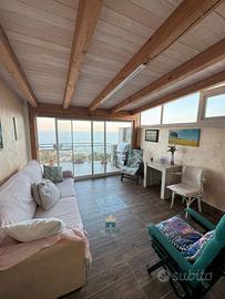 Grazie alla doppia esposizione, l'appartamento offre ambienti luminosi e ariosi. All'ingresso, il soggiorno si apre su un ampio balcone prospiciente con vista mare, mentre la zona notte include due comode camere da letto e una cameretta verandata, adatta a vari utilizzi. La cucina abitabile, spaziosa e funzionale, si affaccia sul secondo balcone, ideale per momenti di relax e convivialità.