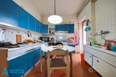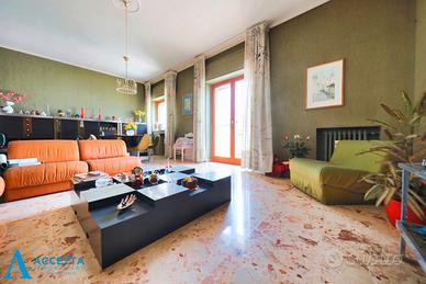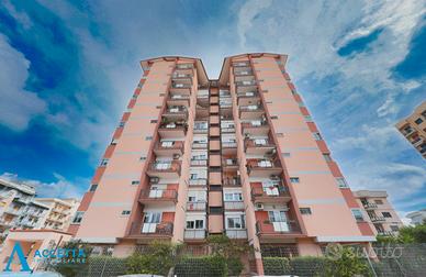 Ampio appartamento panoramico in vendita in Via Lago di Trasimeno, a Taranto, nelle immediate vicinanze di Viale Magna Grecia. Situato al settimo piano di uno stabile signorile dotato di doppio ascensore e montacarichi, l'immobile si distingue per gli spazi generosi e la distribuzione funzionale degli ambienti. Internamente è composto da un ingresso con corridoio, doppio salone, una cucina abitabile con pratico vano dispensa/ripostiglio, due comode camere da letto (con possibilità di realizzare una terza stanza), e due bagni. Completano la proprietà tre balconi, di cui due con vista mare, oltre a una comoda cantinola situata al piano soffitta. La soluzione è ideale per chi desidera vivere in un contesto tranquillo senza rinunciare alla vicinanza ai principali servizi: la zona, infatti, è riservata ma ben collegata, a pochi passi da Viale Magna Grecia. L'immobile presenta rifiniture e impianti originali dell'epoca di costruzione ed è dotato di impianto di riscaldamento e porta blindata.