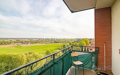 QUADRILOCALE CON BOX E CANTINA! A Vaprio d'Adda, in prossimità della nuova zona denominata "Vaprio Sud", in zona tranquilla e riservata a due passi dal centro, supermercato Bennet a meno di 500 metri e farmacia a meno di 200 metri, proponiamo in vendita spazioso appartamento attualmente usato come quadrilocale, sito al quarto piano servito da ascensore. L'appartamento è dotato di tripla esposizione (sud-est-ovest) e gode di una splendida vista. Internamente l'immobile, disposto su unico livello, è composto da ingresso, ampia cucina abitabile, soggiorno, una stanza attualmente adibita a camera da letto ma eventualmente utilizzabile anche come sala da pranzo, disimpegno, camera matrimoniale, camera singola e bagno finestrato. Completano la soluzione un balcone accessibile dal soggiorno, la cantina ed il box. Rifinita internamente con pavimentazione in ceramica, infissi in doppio vetro alluminio con tapparelle automatizzate nelle camere, porta blindata. Ideale per chi cerca una soluzione di ampia metratura, completa di box e cantina. SPLENDIDA VISTA! CONTATTACI! - Classe: F - IPE: 149.15 kWh/mq anno
