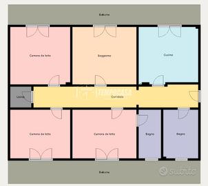 Ingresso in un fabbricato di sole due unità abitativa, la nostra soluzione è ubicata al primo piano con una superficie di 140 mq. Ingresso in disimpegno ampia cucina abitabile, bagno di servizio, salone, camera da letto con secondo bagno annesso, terza camera da letto, ripostiglio ed infine la cameretta.