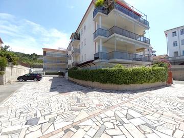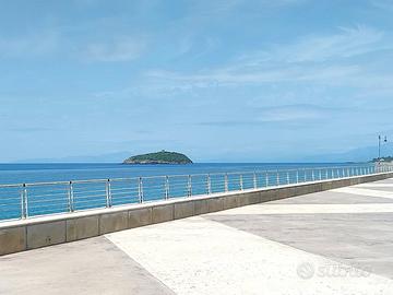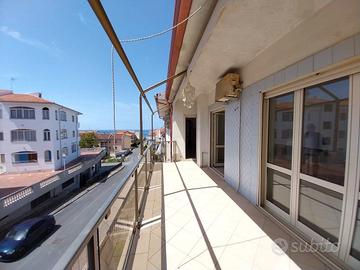 ingresso, ampio salone, tre camere, cucina abitabile, ripostiglio, doppi servizi, terrazzo vista mare, terrazzino, soffitta di circa 32 mq e posto auto numerato e assegnato. La casa dispone di riscaldamento autonomo con caldaia ed elementi. Inoltre è presente la predisposizione per il termocamino nonche' la presenza del climatizzatore.
