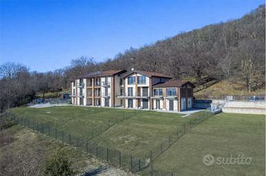 Ampio appartamento di charme con vista mozzafiato sul lago in vendita a Comerio. A Comerio, delizioso borgo collinare immerso nel verde del Parco Regionale Campo dei Fiori, rinomato per la sua tranquillità, i panorami sul lago di Varese e la vicinanza ai principali servizi di Gavirate e Varese, proponiamo in vendita uno splendido appartamento di charme di nuova costruzione, situato in posizione panoramica e circondato dalla natura, con una vista semplicemente mozzafiato sul lago e un giardino privato di oltre 500 mq, ideale anche per la realizzazione di una piscina. Limmobile, in classe energetica A2, offre tutto il comfort e lefficienza di una costruzione moderna, uniti al calore e alleleganza senza tempo di unabitazione dal gusto raffinato e dallanima autentica, inserita in una ex cascina depoca completamente ristrutturata e trasformata in un esclusivo complesso di sole sette unità abitative, riservato e silenzioso, a soli cinque minuti dal centro di Gavirate e dal lungolago. Posto al piano terra di un edificio di tre piani, lappartamento si compone di un ampio e luminosissimo soggiorno con cucina a vista, inondato di luce naturale grazie alle grandi vetrate affacciate sul giardino, due camere matrimoniali con bagno privato, due camerette e un ulteriore bagno; tutte le camere hanno accesso diretto al giardino, creando una continuità perfetta tra interno ed esterno. Completano la proprietà due box doppi con spazio fino a quattro auto, parcheggi condominiali per ospiti e la possibilità di acquistare separatamente un terzo garage con cantina. Le dotazioni includono infissi in legno con triplo vetro, persiane in PVC, riscaldamento a pavimento, porta blindata, predisposizion