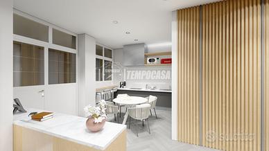 INTERNO: Ingresso su ampio soggiorno e cucina a vista, due ampie camere e doppi servizi finestrati.