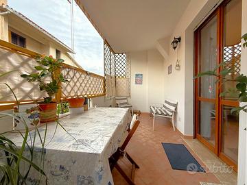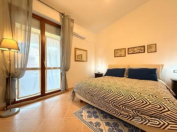 - Due livelli funzionali: L'appartamento è distribuito su due livelli: al piano primo ci accoglie una zona soggiorno-cucina con accesso diretto alla comoda veranda e un bagno finestrato con doccia; al piano superiore trovano spazio due camere da letto esposte sulla veranda e un ampio bagno completo di doccia.