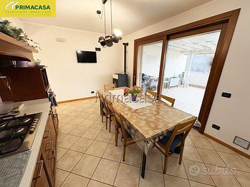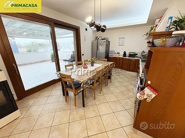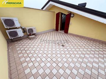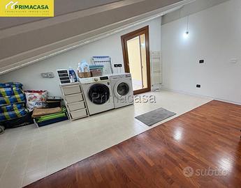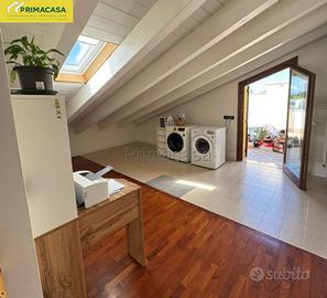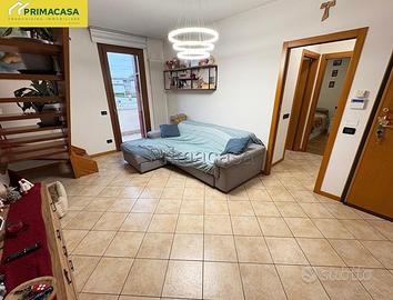 Proponiamo in vendita, in una posizione centrale e comoda ai principali servizi, un recente appartamento sviluppato su due livelli e situato al primo piano di un tranquillo e curato contesto condominiale. L'immobile si distingue per la presenza di ampie terrazze abitabili di circa 30 mq ciascuna, che garantiscono un valore aggiunto all'immobile ed eccellenti spazi esterni da vivere. L'abitazione è così composta: l' ingresso si apre su un luminoso soggiorno dotato di un pratico balcone, proseguendo troviamo una spaziosa cucina abitabile, affacciata sulla prima terrazza principale, completa di pompeiana esterna, perfetta per pranzi, cene e momenti di relax all'aria aperta. La zona notte del piano è composta da un comodo disimpegno e da un moderno bagno finestrato. Al piano superiore si sviluppa la zona mansardata, caratterizzata da soffitti con travi a vista sbiancati ed ambienti accoglienti e versatili, nei quali sono state ricavate due ulteriori stanze ideali come camere, studio o spazi hobby. A completamento del livello troviamo una seconda terrazza abitabile ed un ulteriore poggiolo, che aggiungono pregio e ulteriori sfoghi esterni all'abitazione. La proprietà include infine un garage doppio e un posto auto privato, elementi che conferiscono ulteriore comodità a questa proposta immobiliare. L'appartamento viene venduto parzialmente arredato, pronto per essere vissuto senza bisogno di ulteriori interventi. RIF 50