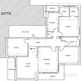 Nuoro, via Gramsci, nel tratto più vicino a Piazza Veneto, proponiamo in vendita un ampio appartamento al terzo piano con ascensore, libero su tre lati e particolarmente luminoso. L'immobile è composto da: Ingresso Spazioso soggiorno panoramico Cucina abitabile Tre camere da letto Tre bagni Ripostiglio Tre balconi Completano la proprietà un garage/cantina al piano terra. Superficie catastale: 143 mq + 13 mq di garage Condizioni: buone, ma da ammodernare Riscaldamento centralizzato Spese condominiali: circa €170/mese Classe energetica D - IPE 176,90 kWh/m² anno Prezzo: €125.000