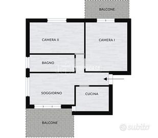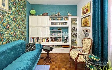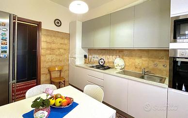 L'appartamento è composto da un soggiorno luminoso con accesso diretto al terrazzo, una cucina abitabile separata, due camere matrimoniali - di cui una con balcone - e un bagno finestrato con vasca.