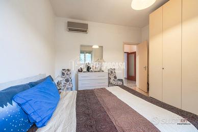 L'immobile ha una metratura complessiva di 104mq calpestabili, una sala di più di 30mq con balcone, 2 camere matrimoniali rispettivamente di 15mq e 17mq, e una camera singola di 10mq, bagno di 5mq finestrato e in fine una cucina abitabile di 11mq con il suo balcone affacciato sull'interno il tutto collegato da un ampio corridoio.