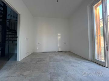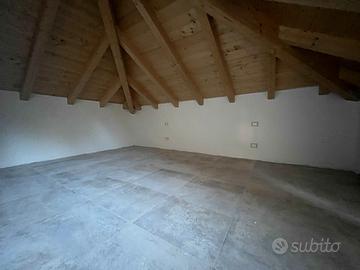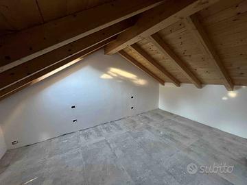 A soli 100 metri dal Lago Maggiore, nuovo appartamento disposto su due livelli (p.1°+mans), composto da soggiorno con cucina a vista , disimpegno, bagno ,camera e balcone al piano primo ; due locali hobby al piano mansardato con travi a vista.