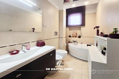 Attualmente la dimora si compone di ampio ingresso/salone, tre camere da letto, studio, cucina abitabile, bagno con vasca idromassaggio, secondo bagno con doccia, pratico ripostiglio/dispensa.