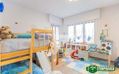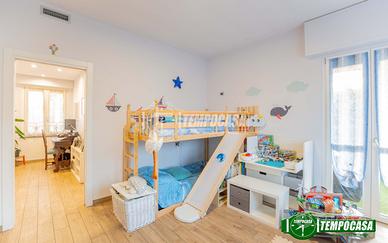 La zona notte offre due spaziose camere da letto, di cui la matrimoniale dotata di una pratica cabina armadio, e due bagni finestrati: uno con box doccia e l'altro con vasca, per garantire il massimo comfort.