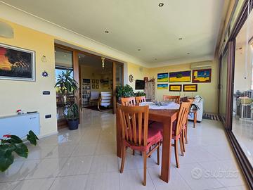Proseguendo si accede nella splendida zona pranzo, resa unica dalla presenza di ampie vetrate panoramiche con affaccio sul parco, rendendo l'ambiente molto luminoso.