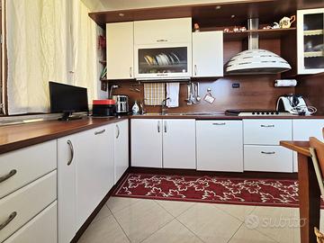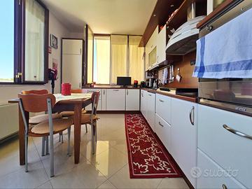 A completare la zona giorno, una cucina abitabile, anch'essa particolarmente luminosa, dotata di angolo cottura e tavolo per la colazione, ideale per una vita quotidiana funzionale e confortevole.