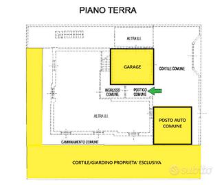 A piano terra completano la proprietà un ampio giardino esclusivo di circa 130 mq, un posto auto privato, garage e spazi comuni.
