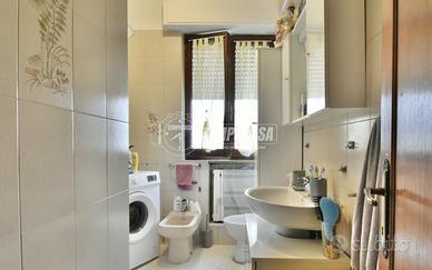 L'appartamento è dotato di riscaldamento autonomo a metano con radiatori, infissi in legno e pavimentazione in ceramica. La palazzina presenta una facciata prevalentemente in mattoni a vista, che conferisce solidità e un aspetto sobrio all'edificio. Completano la proprietà un prezioso garage privato di circa 15 mq, elemento di grande valore nella zona, e una cantina di 2 mq, utile come spazio di servizio o deposito.