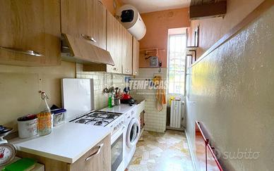 L'appartamento è composto da ingresso sul disimpegno, cucina, due ampie camere da letto, una delle quali con balcone, infine servizio finestrato.