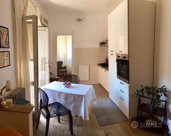 ARREDATA CON ANGOLO COTTURA, LETTO MATRIMONIALE, ARMADIO, DIVANO E TAVOLO DA CUCINA.