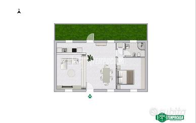 L'ingresso si apre su un ampio soggiorno con cucina a vista, luminoso e accogliente, con porta finestra che conduce al giardino privato sul retro: uno spazio ideale per rilassarsi o mangiare all'aperto. La camera matrimoniale è spaziosa e ben organizzata, il bagno ampio e finestrato, mentre il ripostiglio offre un comodo spazio aggiuntivo per la gestione della casa.