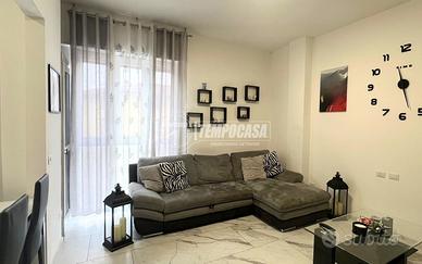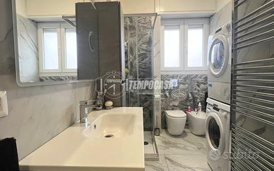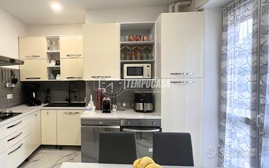 L'appartamento si trova al primo piano ed è caratterizzato da una gestione ottimale degli spazi. L'ingresso su un luminoso soggiorno, la cucina a vista è sapientemente inserita in una nicchia dedicata, che garantisce funzionalità senza rinunciare al design open-space, la camera matrimoniale di generose metrature, ideale per chi necessita di spazio extra per armadiature o un angolo smart-working. Un ampio balcone percorre l'intera lunghezza dell'appartamento, servendo sia il soggiorno che la camera da letto.