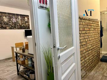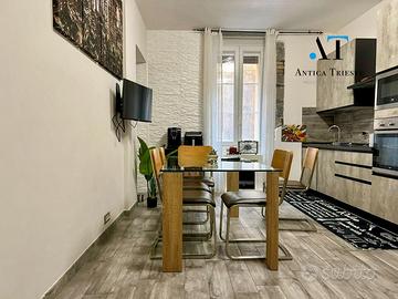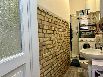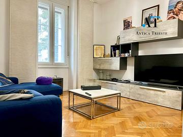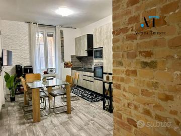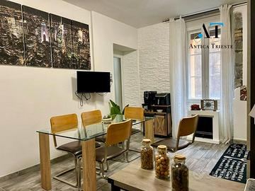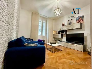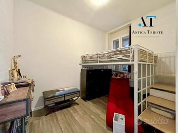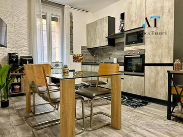 Nel cuore del vivo rione di Roiano, in uno stabile risalente ai primi anni del 1900 dove sono state rinnovate le facciate e il tetto, proponiamo in vendita un ampio bilocale di circa 80mq sito al piano ammezzato pronto da abitare. L'immobile si compone di un atrio di ingresso, una grande cucina abitabile con accesso diretto al poggiolo verandato, ampio soggiorno, comoda camera matrimoniale e bagno completo finestrato. Internamente è stato completamente ristrutturato e viene venduto arredato. Dotato di climatizzazione e spese condominiali contenute. A completare questa proposta, una cantina in muratura di proprietà e dei posti moto condominiali. Adatto sia a coppie sia ad uso investimento. Specifichiamo che alcune immagini sono state generate tramite IA.