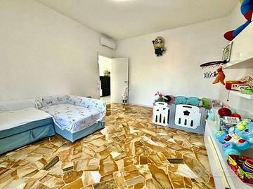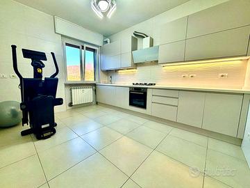 L'appartamento è composto da ingresso, zona giorno con salone e cucina abitabile entrambi con accesso al terrazzo, camera matrimoniale con balcone, disimpegno e bagno. Di pertinenza un'autorimessa singola e una cantina.