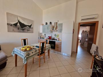 L'immobile, sito al secondo e ultimo piano di un mini condominio, è composto da ingresso soggiorno con cucina, disimpegno, ampia camera matrimoniale con veranda e bagno con box doccia.