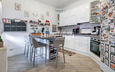 Gli spazi sono stati ripensati per una vita quotidiana moderna e funzionale: la cucina a vista sul soggiorno crea un ambiente accogliente, luminoso e perfetto da vivere ogni giorno.