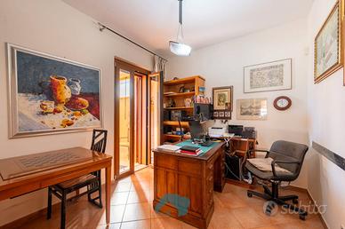 L'abitazione offre un ampio e luminoso salone, cucina abitabile collegata alla veranda a vetri, due camere matrimoniali con accesso diretto alla corte privata e uno studio ideale per lo smart working. Ambienti armoniosi, finiture di pregio e spazi pensati per il massimo comfort quotidiano.