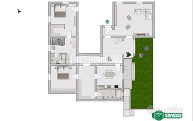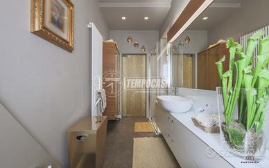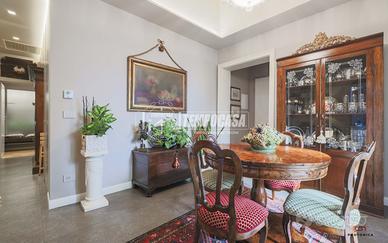 Esso è composto da ampio soggiorno e ulteriore sala da pranzo, entrambi collegati da una piccola veranda, cucina abitabile con porta in cristallo, due spaziose camere da letto matrimoniali e una singola/studio con cabina armadio, cucina a scomparsa/richiudibile e due bagni.