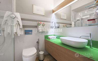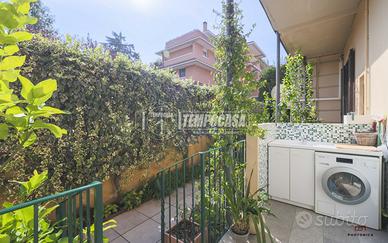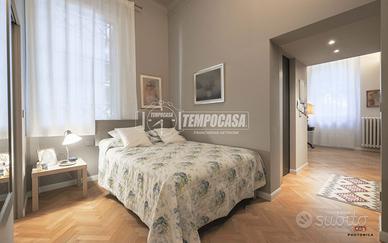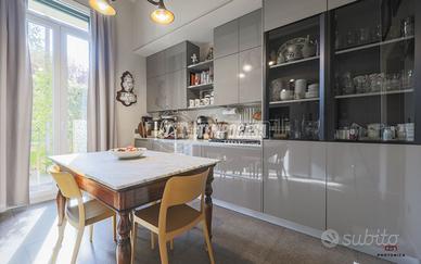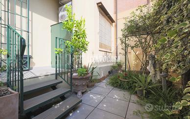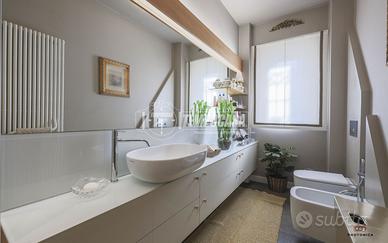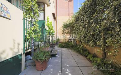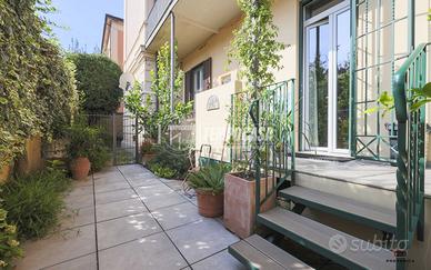 Completa la proprietà un piccolo giardino pavimentato privato, una cantina di 30mq finestrata ubicata sotto la sala (con possibilità di collegarle) e ulteriore cantina di 12 mq. L'immobile è dotato di riscaldamento autonomo, impianto di climatizzazione canalizzato in tutta la casa, armadi a muro, parquet in rovere bolognese in tutta la casa e finiture di pregio.