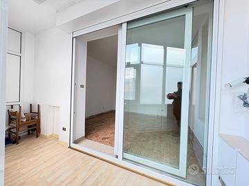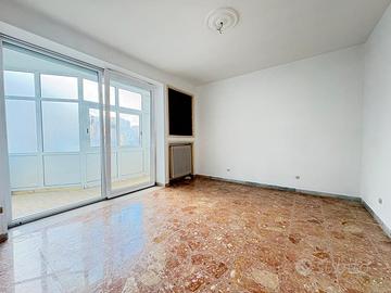 L'appartamento gode di doppia esposizione e di un'eccellente luminosità, favorita dal piano alto e dall'esposizione a sud. Gli spazi sono ampi, regolari e facilmente adattabili. L'ingresso conduce a una zona giorno con cucina ampia a vista, funzionale e conviviale. Una stanza separata da porta scorrevole in vetro e legno, con parete specchiata, affaccia su un balcone completamente verandato, risultando molto luminosa e versatile. Un secondo ambiente, anch'esso con affaccio sulla veranda, è valorizzato da ampie vetrate con infissi nuovi scorrevoli e apertura vasistas. Completa la distribuzione una terza camera da letto, ideale come matrimoniale o ulteriore stanza per studenti.