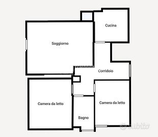 La zona notte, sapientemente separata, ospita due camere di importanti dimensioni, facilmente adattabili alle esigenze personali, e un bagno finestrato, dotato di ottima aerazione naturale.