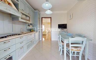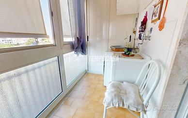L'appartamento è composto da ingresso su ampio soggiorno, cucina abitabile, disimpegno, due camere da letto e doppi servizi, con la possibilità di ricavare una terza camera da letto o uno studio, qualora ci fosse l'esigenza di avere uno spazio in più, rispetto all'attuale distribuzione degli ambienti.