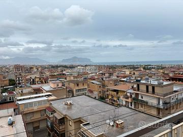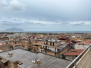 Sicilia, Palermo, VILLABATE - Largo Hilton, ubicazione centralissima, panoramico sul mare arioso e luminoso, appartamento composto da ingresso su saletta/disimpegno, ampio salone doppio (ricavabile 3° stanza) con accesso a balcone vista mare, corridoio con librerie, cucina abitabile con accesso a balcone in parte verandato (zona lavanderia) vista golfo di Palermo, 2 ampie stanze da letto matrimoniali, comodo ripostiglio e wc con doccia e vasca. Cod. Rif. A/261