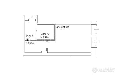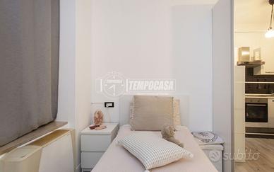 La soluzione presenta una grande zona giorno/notte con cucina a vista e doppia finestra con esposizione su via Vitruvio, comodo corridoio sfruttato con armadiature e bagno completo.