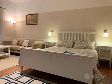 L'alloggio di circa 40mq, situato al piano terra di un Immobile situato in un ampio parco, con ingresso indipendente, è costituito da una zona letto - soggiorno, cabina armadio, zona pranzo con cucina ed un grande bagno. E' dotato di tutte le comodità necessarie come Letto matrimoniale, divano, cucina attrezzata e parcheggio riservato.