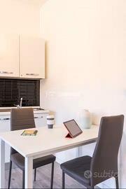 La soluzione internamente presenta: ingresso, ampia zona giorno/notte con cucina e 3 grandi finestre che affacciano su via Vitruvio, e bagno.